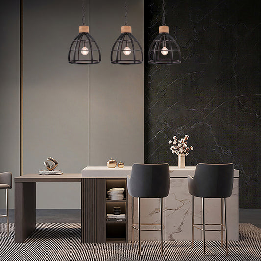 Chericoni Aperto Hanglamp Eettafel – 3-lichts Hanglamp van Metaal met Houten Balk – Industrieel Design – E27 – Zwart – Ø25 cm