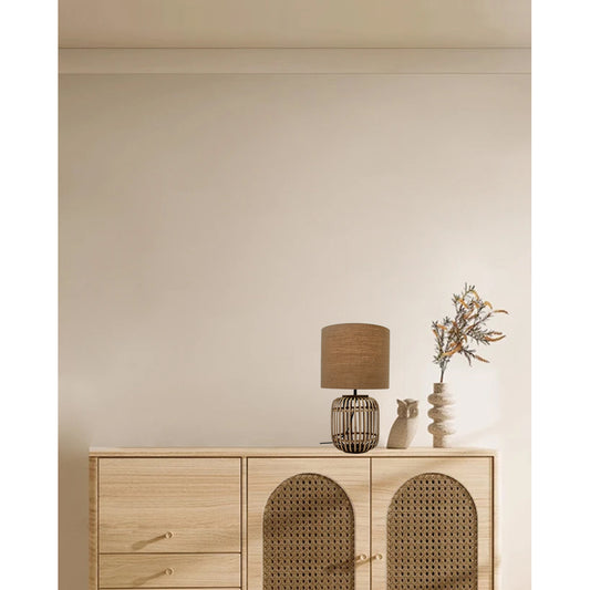 Various Woven Tafellamp - Ø30 cm - Bamboe Voet met Stoffen Kap- Zwart - E27