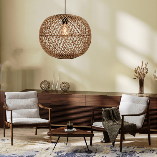 Tweedekans artikel - Chericoni Nature Diagonaal Hanglamp – 1 lichts – Ø32 cm – E27 - Natuur hout